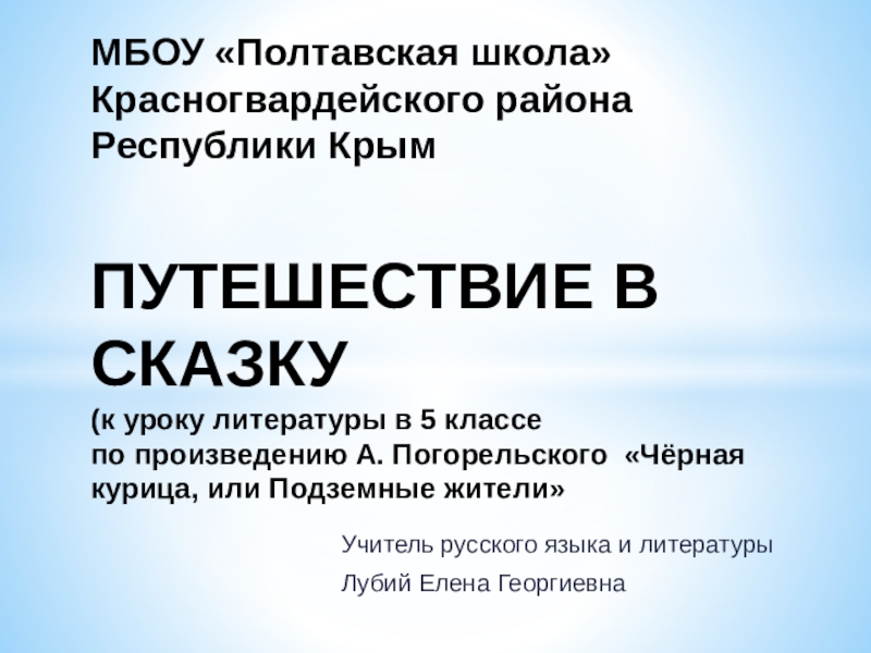по произведению А. Погорельского «Чёрная курица, или Подземные жители»