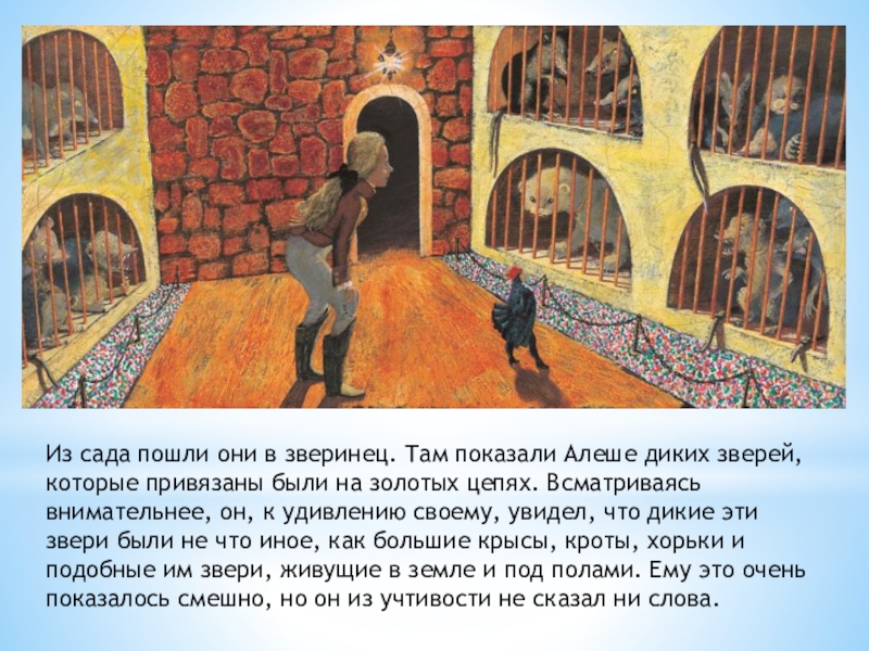 Слайд 16Из сада пошли они в зверинец. Там показали Алеше диких зверей,