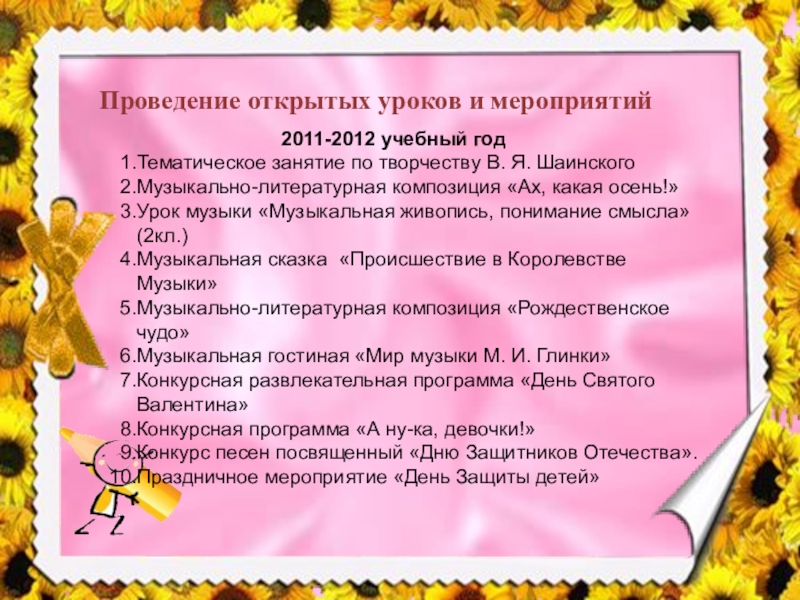 Слайд 12Проведение открытых уроков и мероприятий