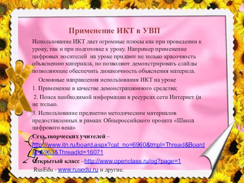 Основные направления использования ИКТ на уроке