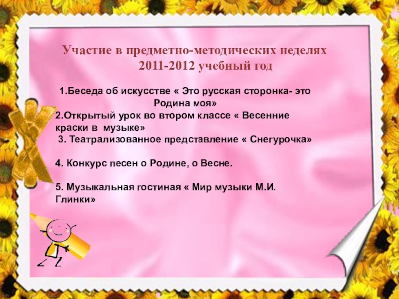 Но чтобы все воплотить в практической деятельности нужно и самой постоянно работать над собой, повышать уровень профессиональной компетентности, овладеть множествами знаний и умений.