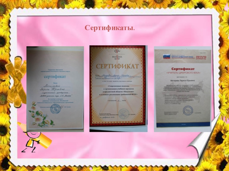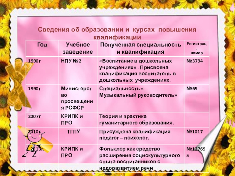Слайд 7Сведения об образовании и курсах повышения квалификации