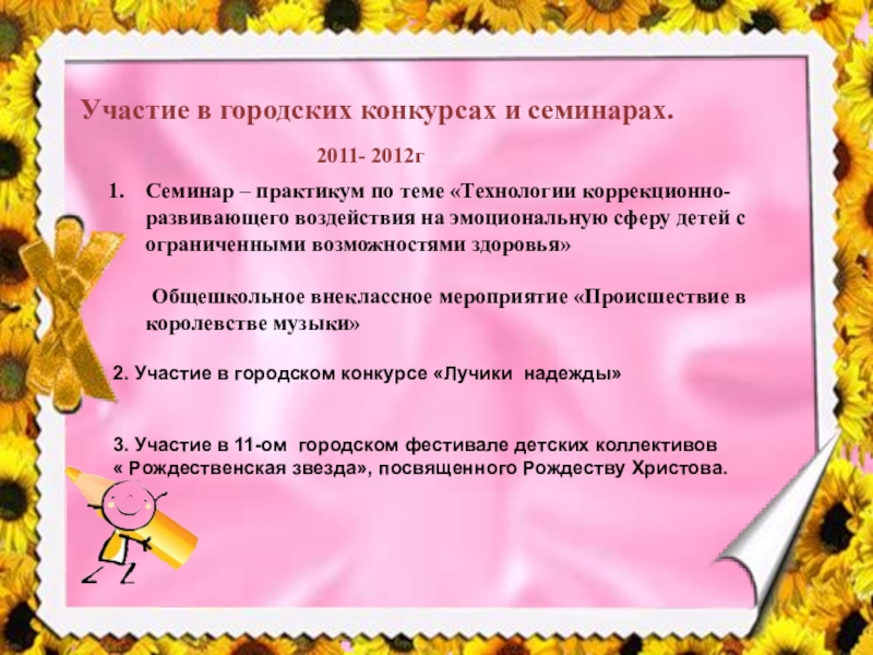 Слайд 20Участие в городских конкурсах и семинарах.