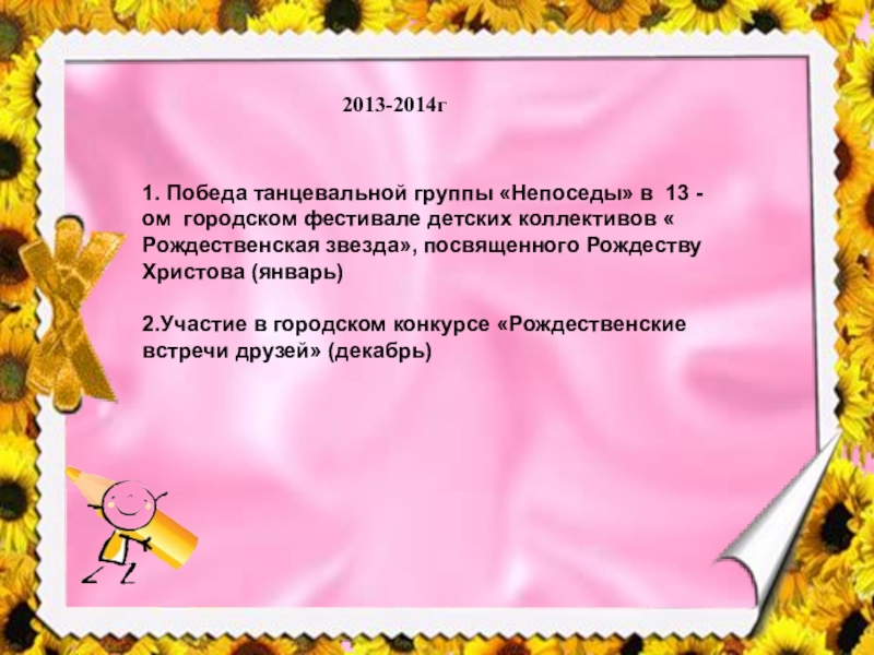 1. Победа танцевальной группы «Непоседы» в 13 - ом городском фестивале
