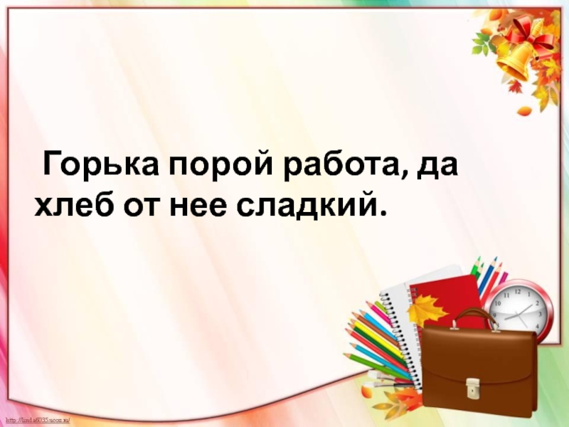 Слайд 5 Горька порой работа, да хлеб от нее сладкий.