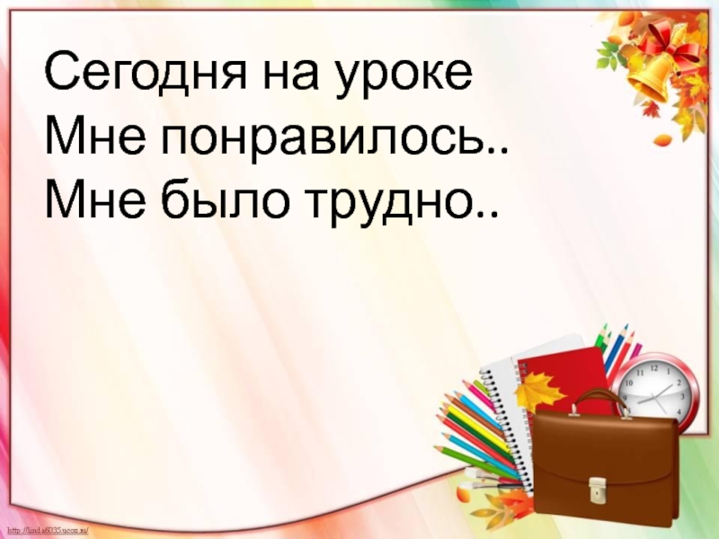 Слайд 9Сегодня на уроке Мне понравилось.. Мне было трудно..