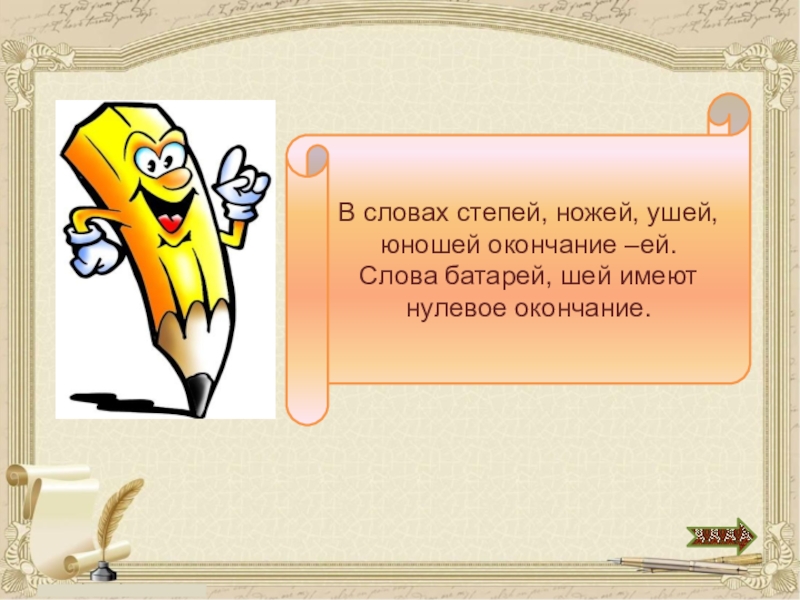 степей, ножей, батарей, шей, ушей, юношей
