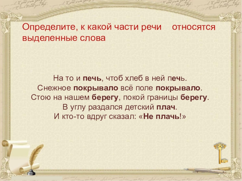 К каким частям речи относятся слова: