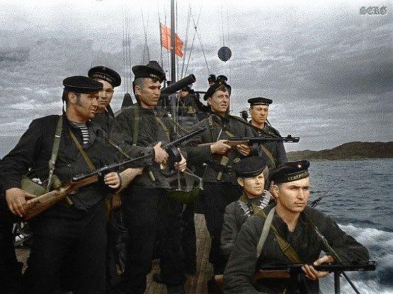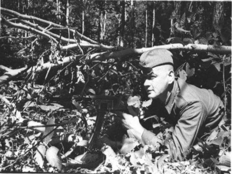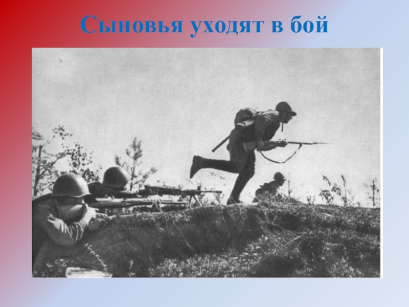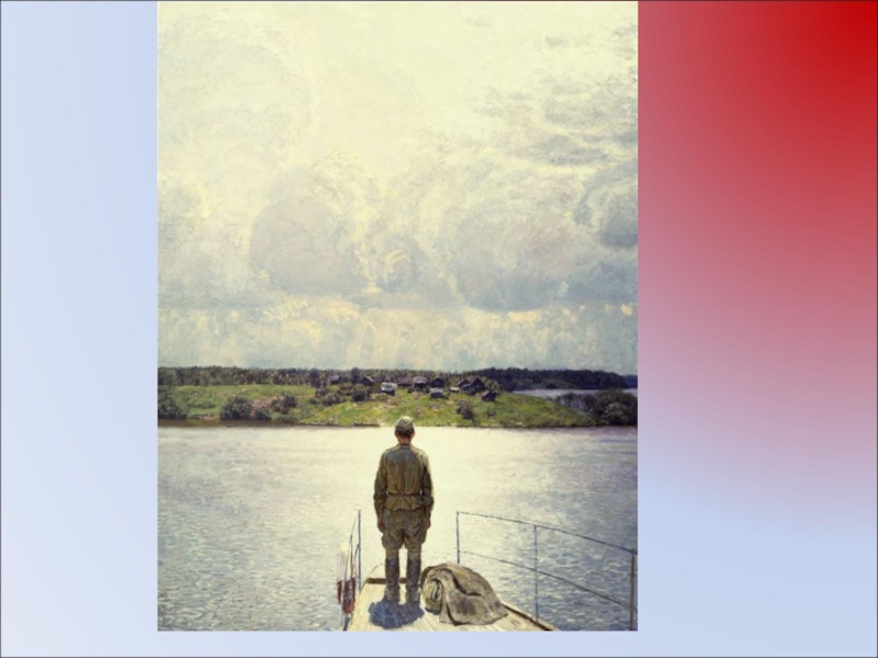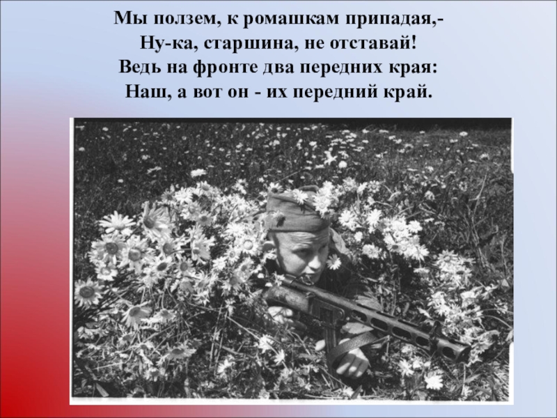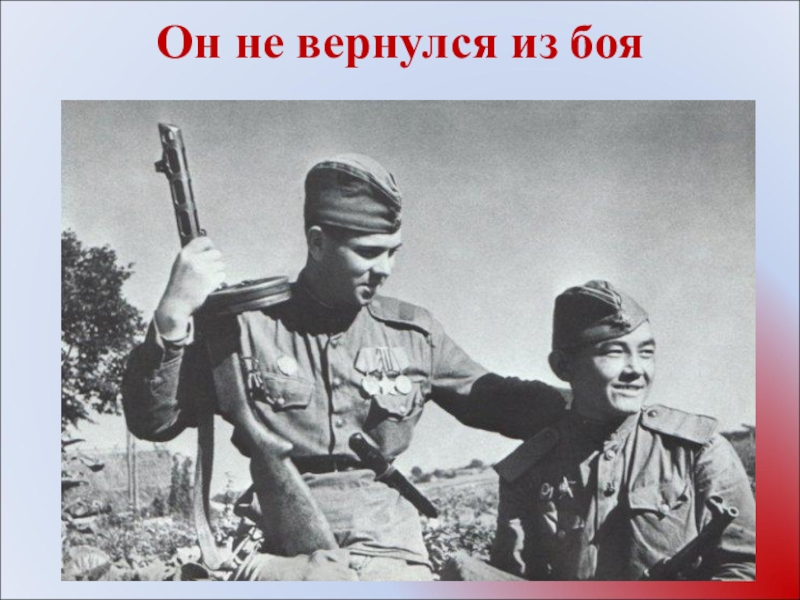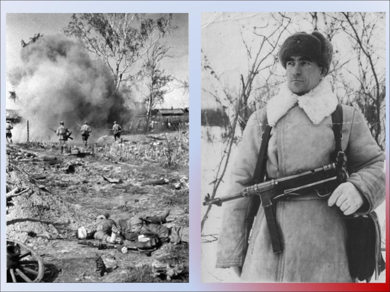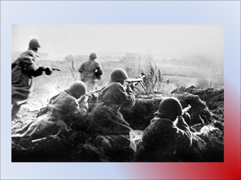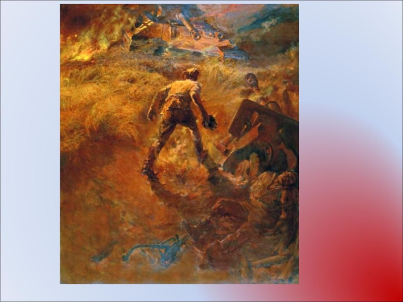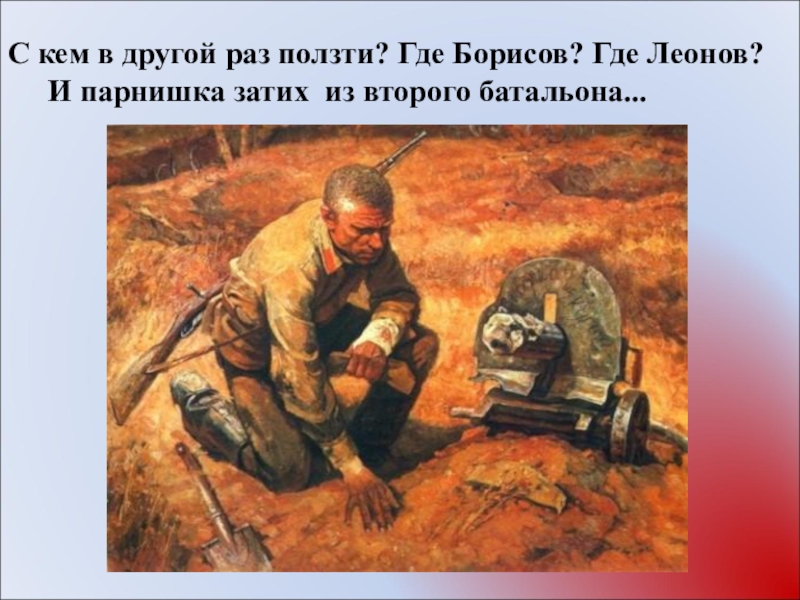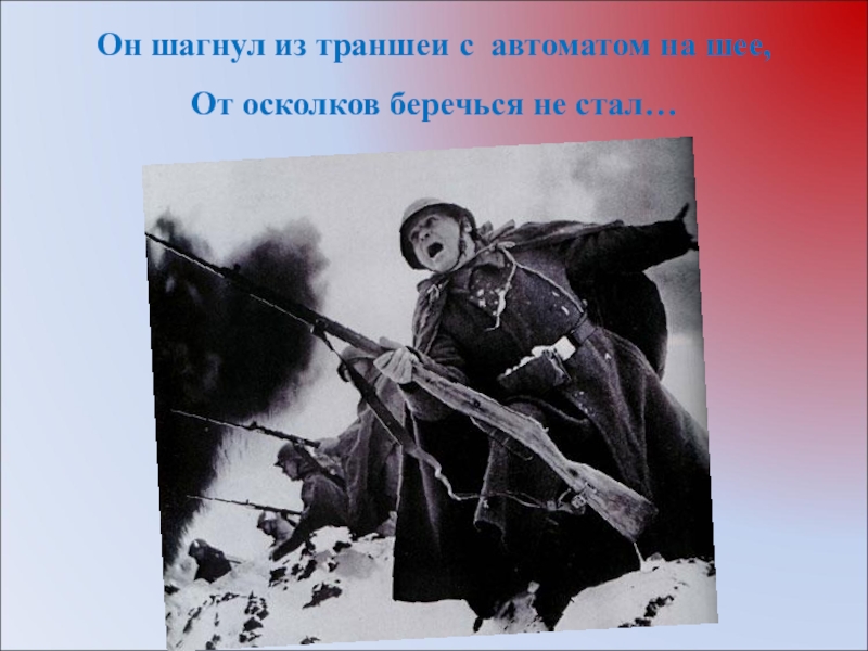 Слайд 131Он шагнул из траншеи с автоматом на шее,