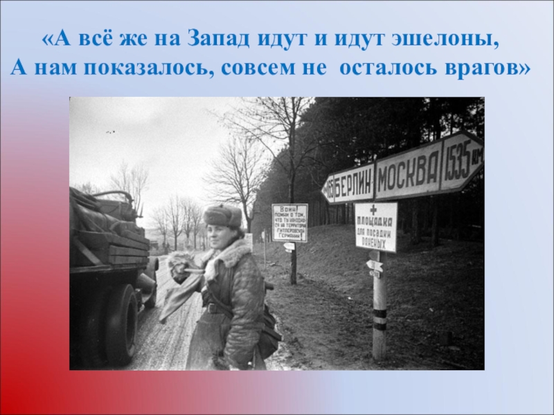 Слайд 146«А всё же на Запад идут и идут эшелоны,