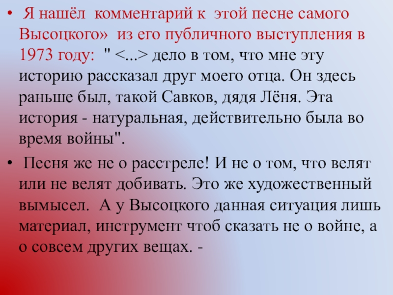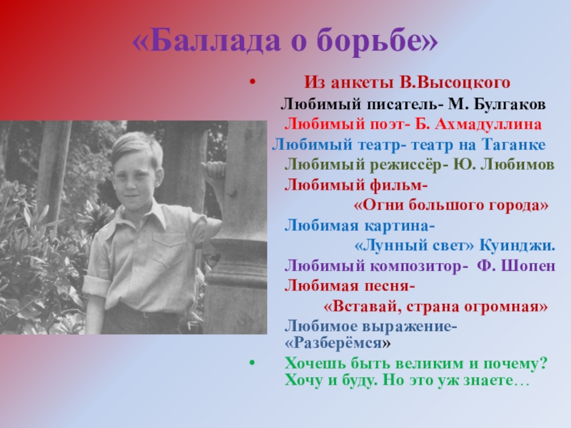 Слайд 10В. Высоцкий читает стихотворение Семёна Гудзенко «Перед атакой»