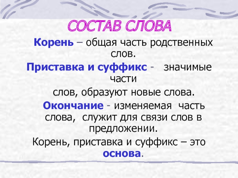 Окончание - изменяемая часть слова, служит для связи слов в предложении.