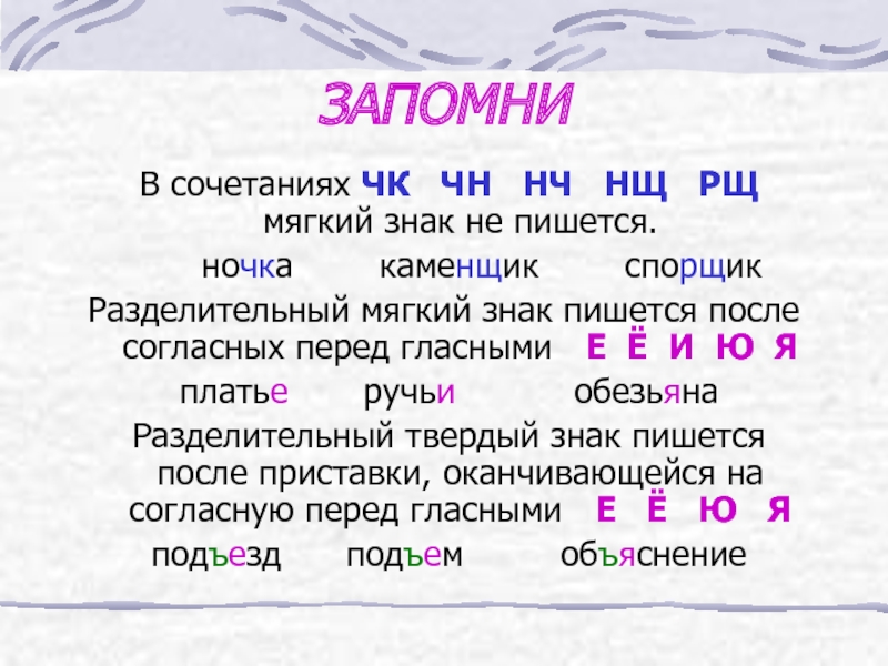 Разделительный мягкий знак пишется после согласных перед гласными Е Ё И Ю Я