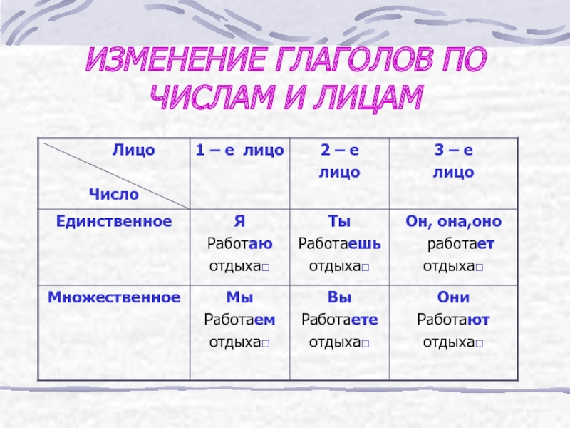 Слайд 22ИЗМЕНЕНИЕ ГЛАГОЛОВ ПО ЧИСЛАМ И ЛИЦАМ