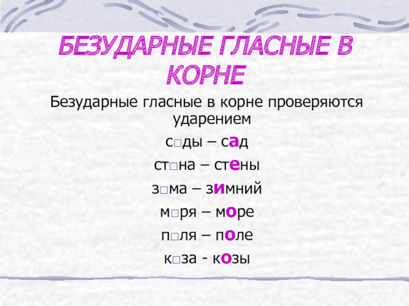 Слайд 7БЕЗУДАРНЫЕ ГЛАСНЫЕ В КОРНЕ