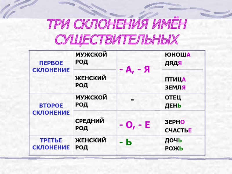Слайд 17ТРИ СКЛОНЕНИЯ ИМЁН СУЩЕСТВИТЕЛЬНЫХ