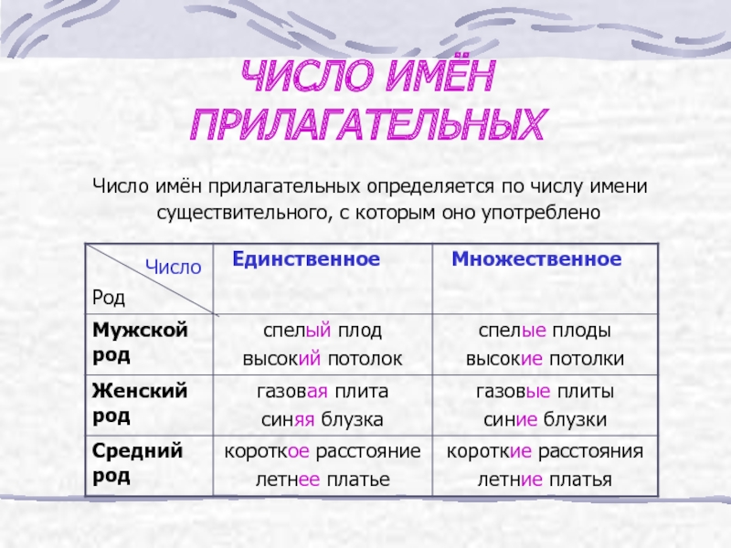 Слайд 19ЧИСЛО ИМЁН ПРИЛАГАТЕЛЬНЫХ