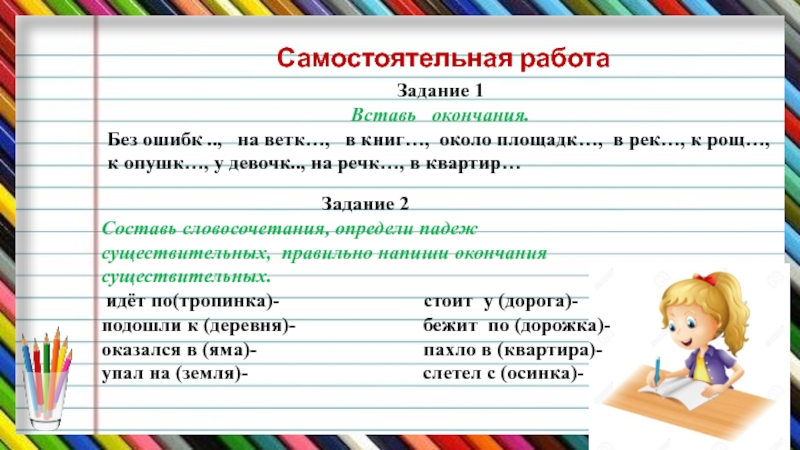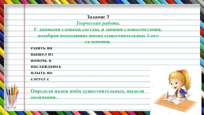 Составь словосочетания, определи падеж существительных, правильно напиши окончания существительных.