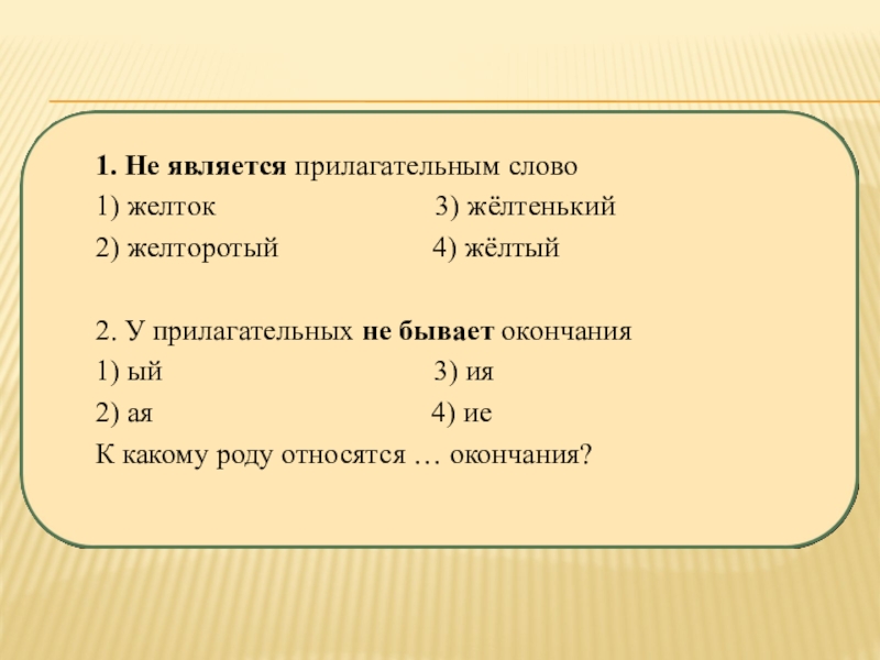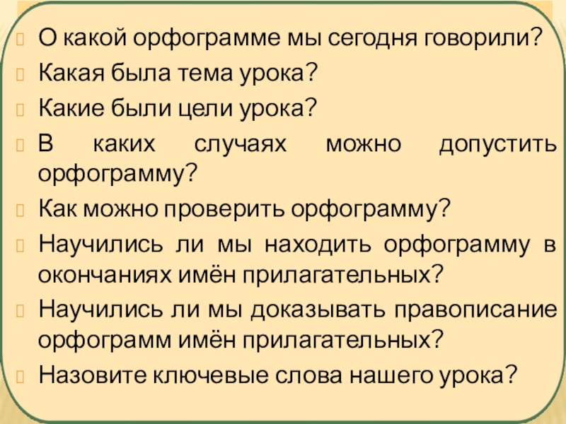 Проверить правописание букв гласных в безударных окончаниях имён прилагательных можно с помощью вопросов, так как у слов-вопросов всегда ударные окончания.