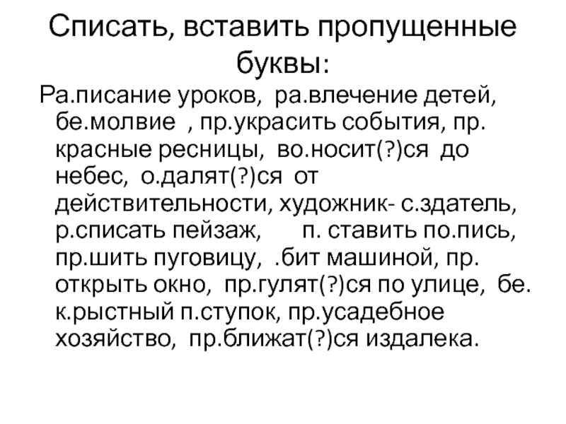 Слайд 3Списать, вставить пропущенные буквы:
