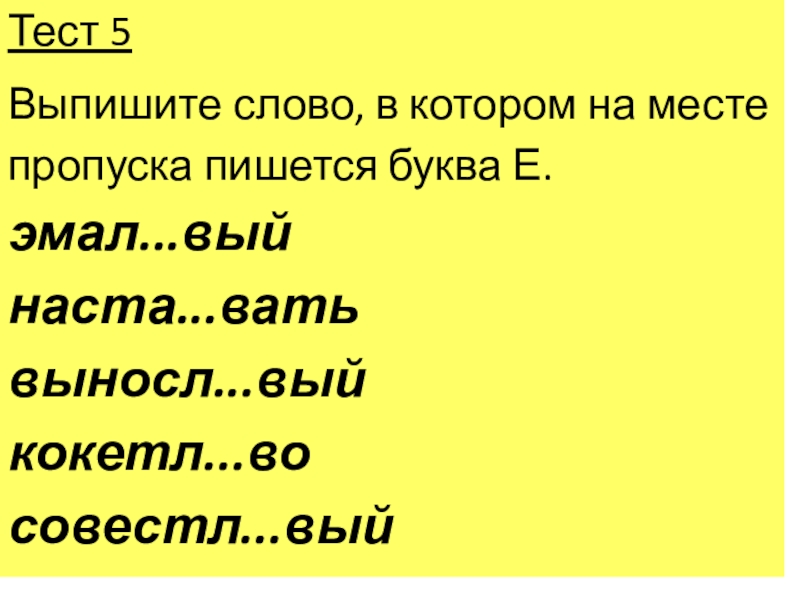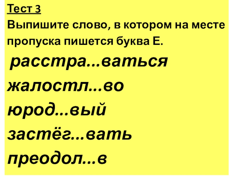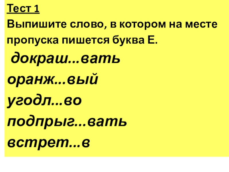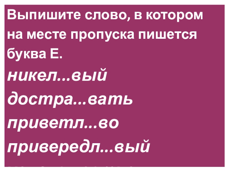 Слайд 2Выпишите слово, в котором на месте пропуска пишется буква Е.