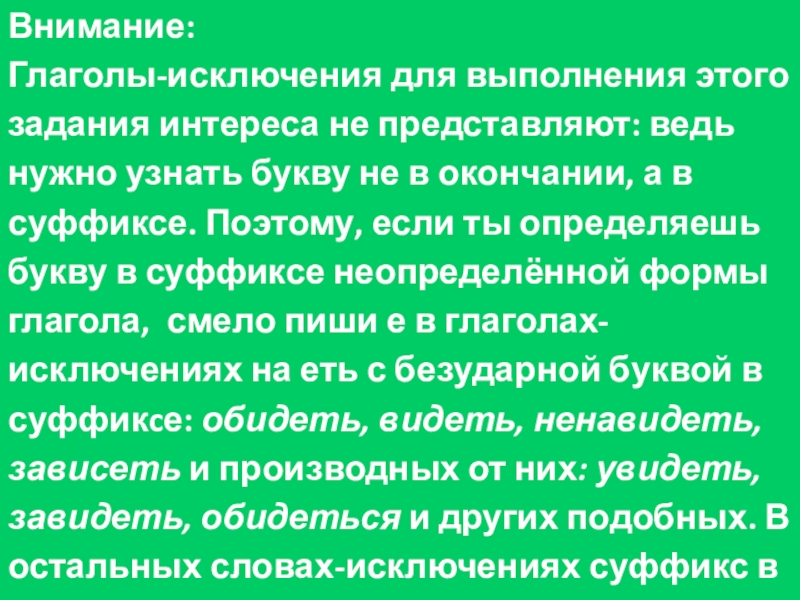 Глаголы-исключения для выполнения этого задания интереса не представляют: ведь нужно узнать