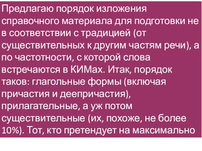 Слайд 6Предлагаю порядок изложения справочного материала для подготовки не в соответствии с