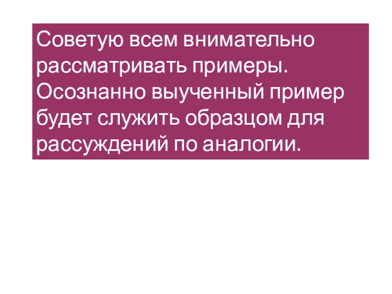 Слайд 7Советую всем внимательно рассматривать примеры. Осознанно выученный пример будет служить образцом