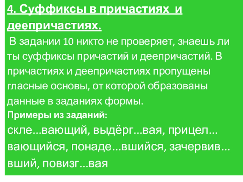Слайд 144. Суффиксы в причастиях и деепричастиях.