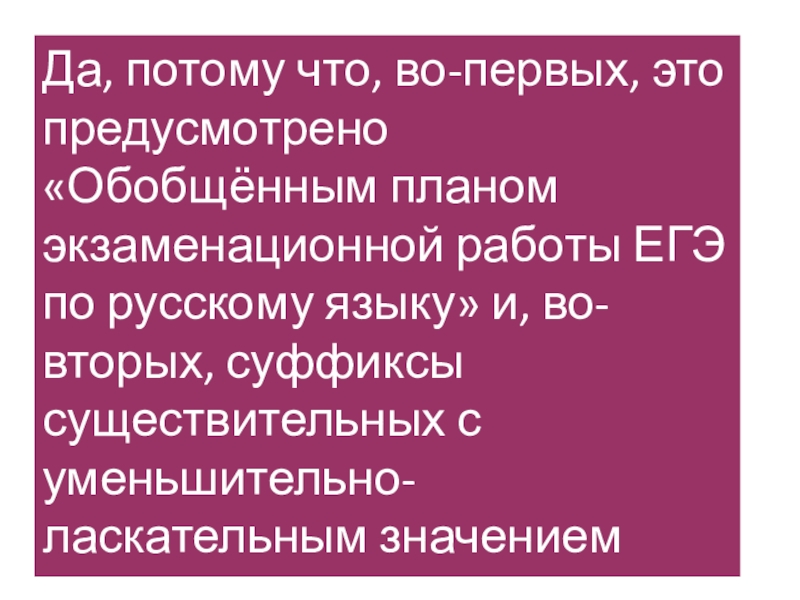 Слайд 5Да, потому что, во-первых, это предусмотрено «Обобщённым планом экзаменационной работы ЕГЭ