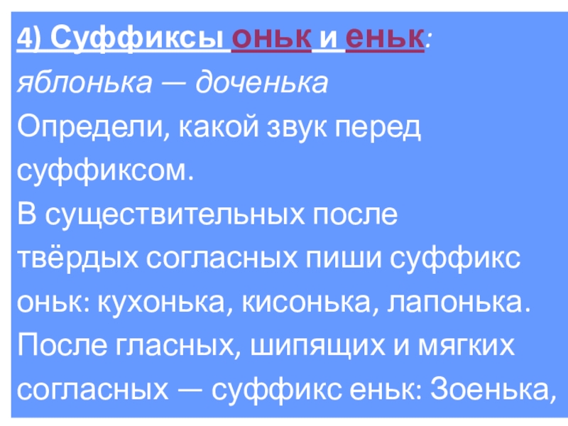 Слайд 324) Суффиксы оньк и еньк: яблонька — доченька