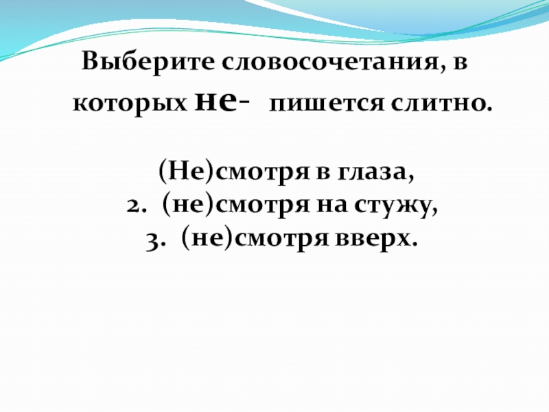 2.(Не) взирая на ливень, туристы продолжили свой путь.