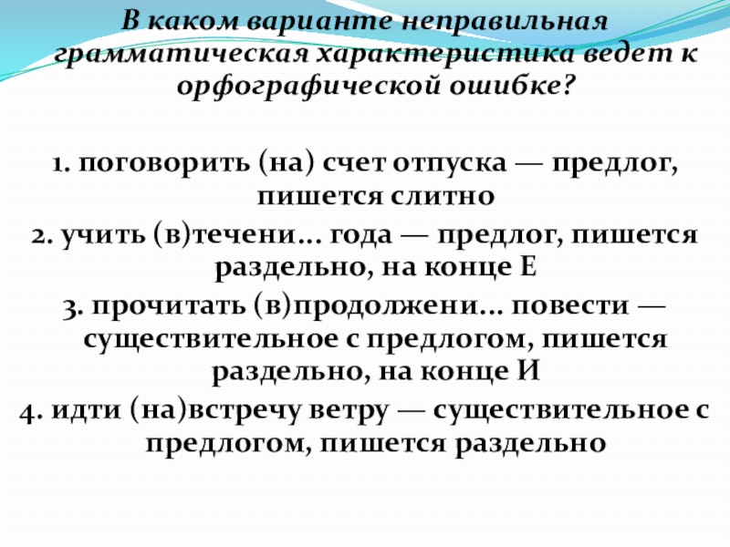 Слайд 123В каком варианте неправильная грамматическая характеристика ведет к орфографической ошибке?