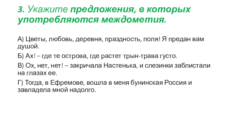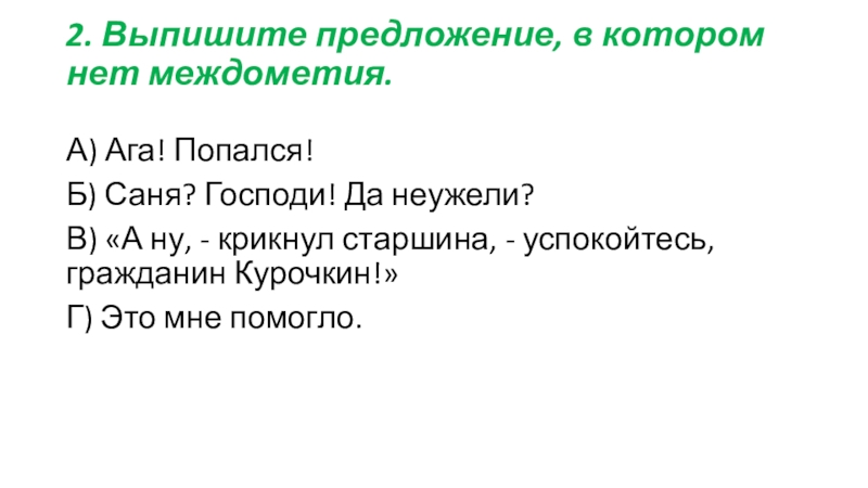 Слайд 272. Выпишите предложение, в котором нет междометия.