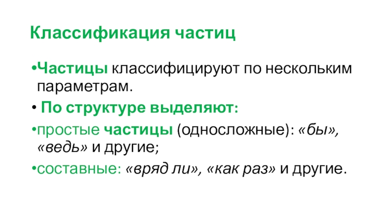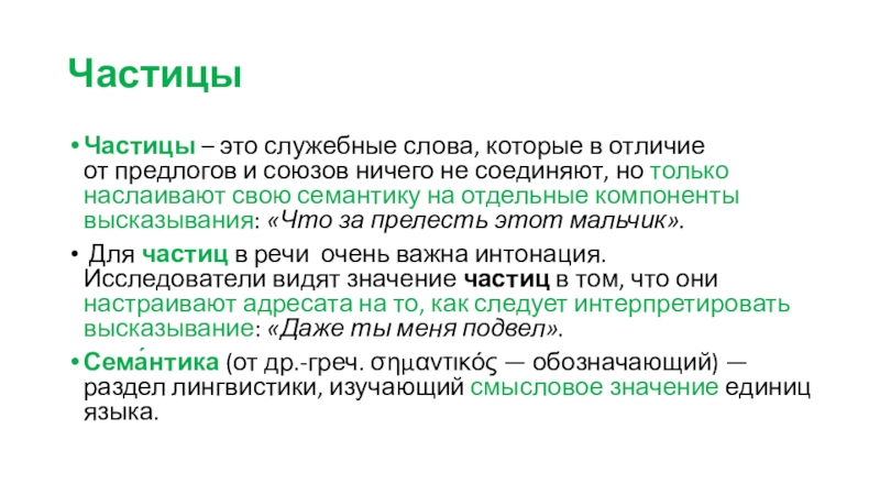 Частицы – это служебные слова, которые в отличие от предлогов и союзов ничего не соединяют, но только
