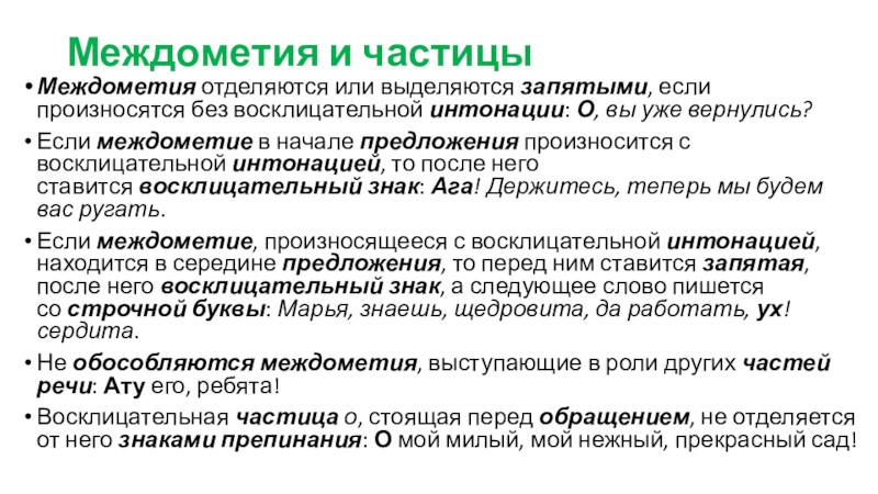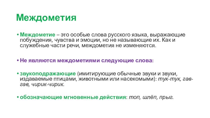 но не называющие их. Как и служебные части речи, междометия не изменяются.