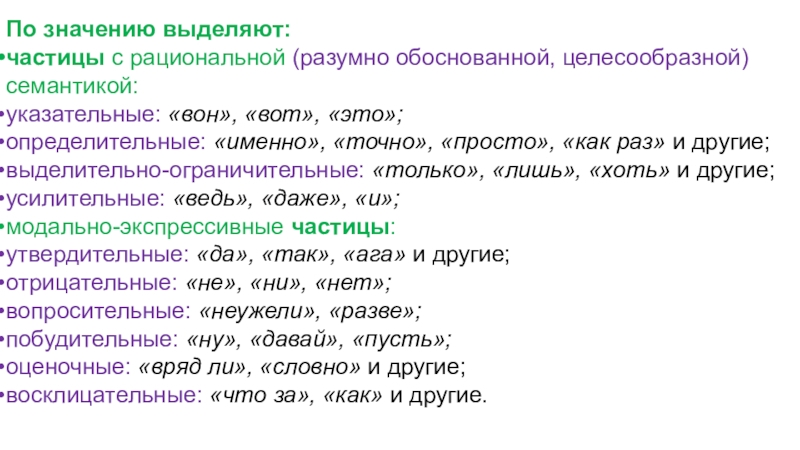 частицы с рациональной (разумно обоснованной, целесообразной) семантикой: