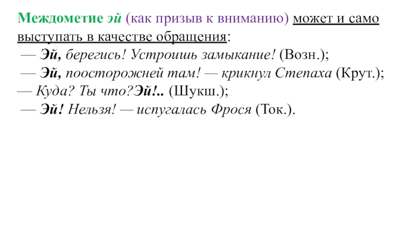 Слайд 19Междометие эй (как призыв к вниманию) может и само выступать в качестве обращения:
