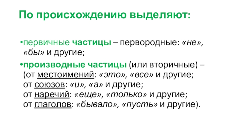 производные частицы (или вторичные) – (от местоимений: «это», «все» и