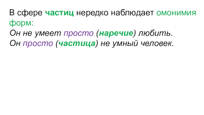 Слайд 12В сфере частиц нередко наблюдает омонимия форм:
