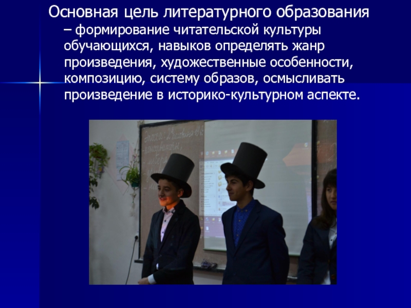 Основная цель литературного образования – формирование читательской культуры обучающихся, навыков определять жанр произведения, художественные особенности, композицию, систему