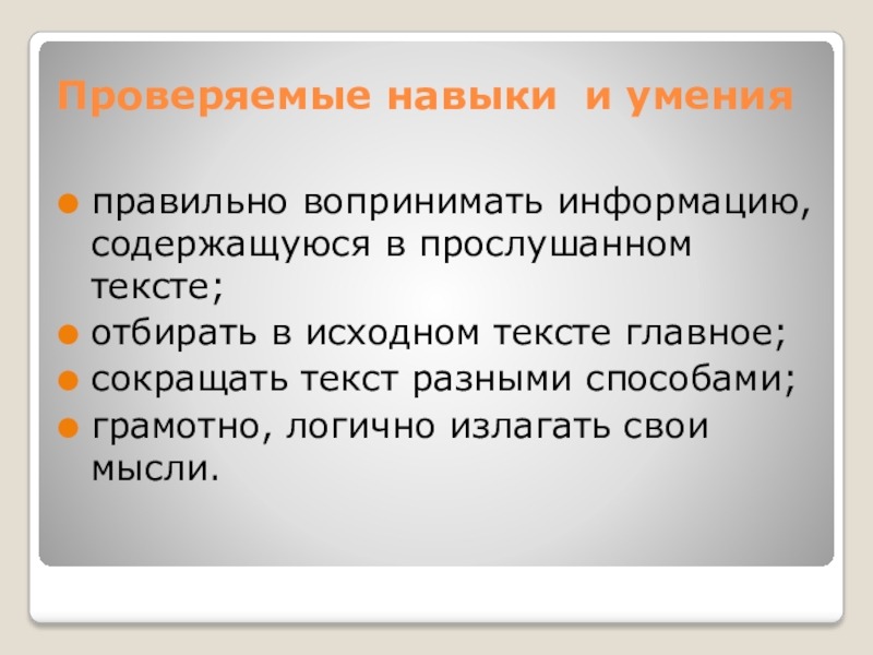 правильно вопринимать информацию, содержащуюся в прослушанном тексте;
