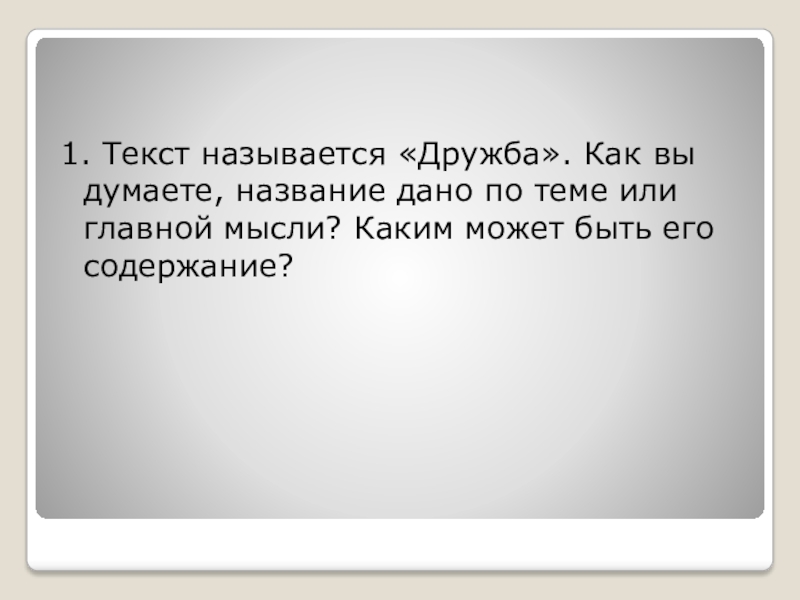 1. Текст называется «Дружба». Как вы думаете, название дано
