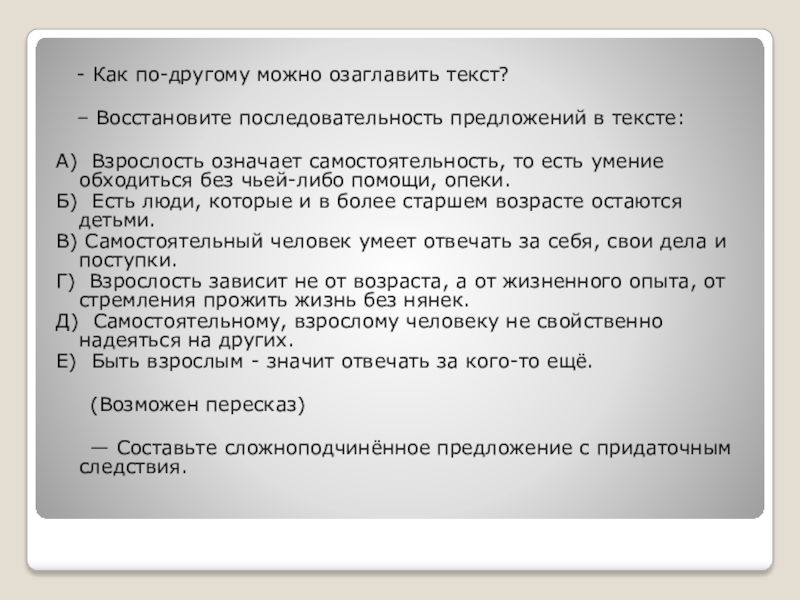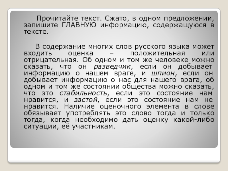 Слайд 28 Прочитайте текст. Сжато, в одном предложении, запишите