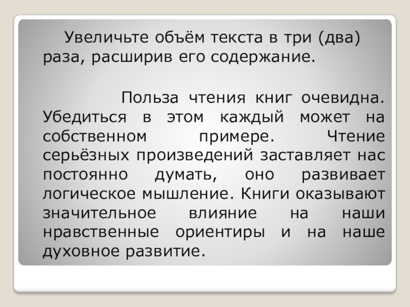 Слайд 25 Увеличьте объём текста в три (два) раза, расширив