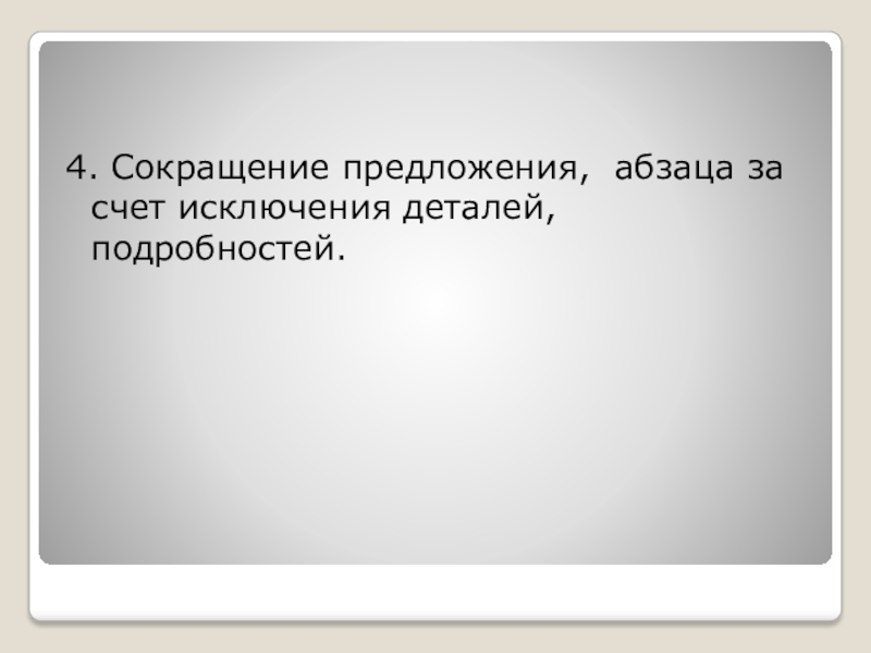 4. Сокращение предложения, абзаца за счет исключения деталей, подробностей.