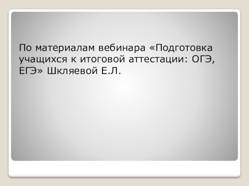 По материалам вебинара «Подготовка учащихся к итоговой аттестации: ОГЭ, ЕГЭ» Шкляевой