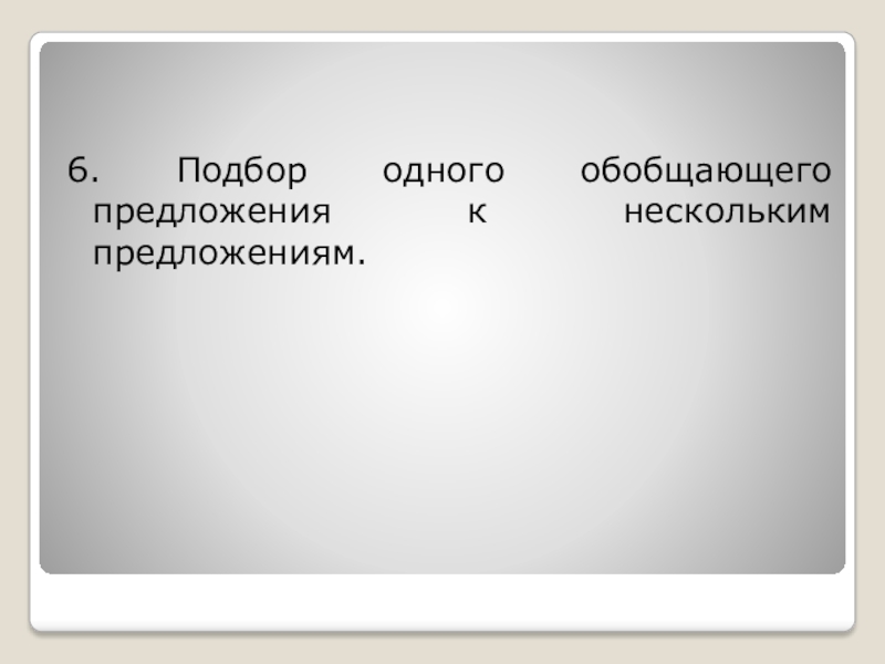 6. Подбор одного обобщающего предложения к нескольким предложениям.
