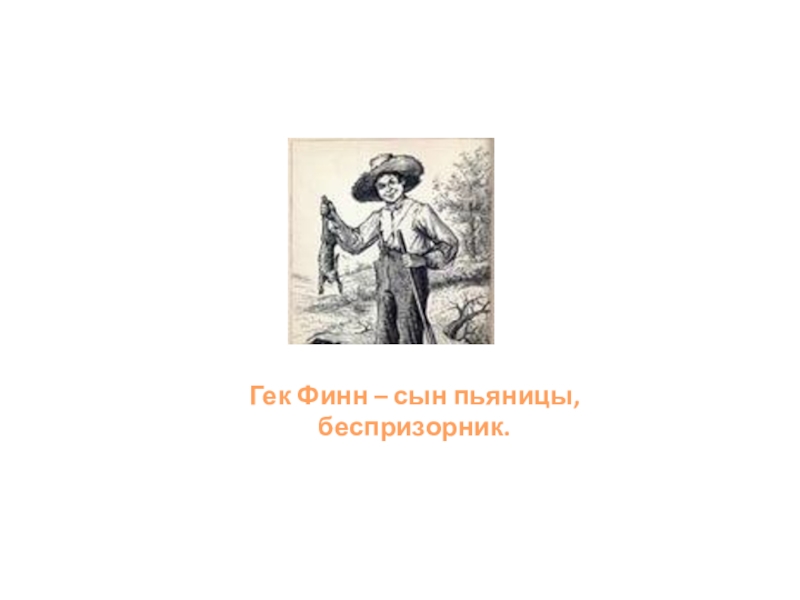 Слайд 4Гек Финн – сын пьяницы, беспризорник.