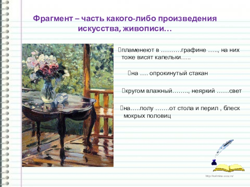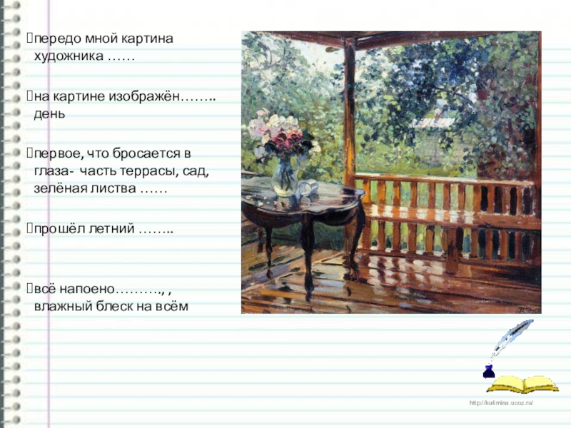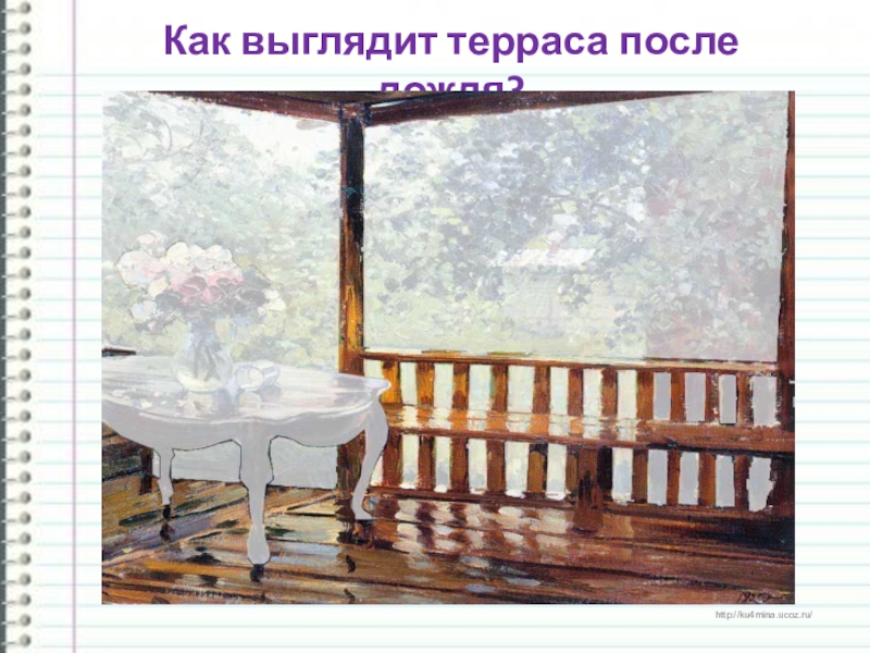 на…..полу …….от стола и перил , блеск мокрых половиц